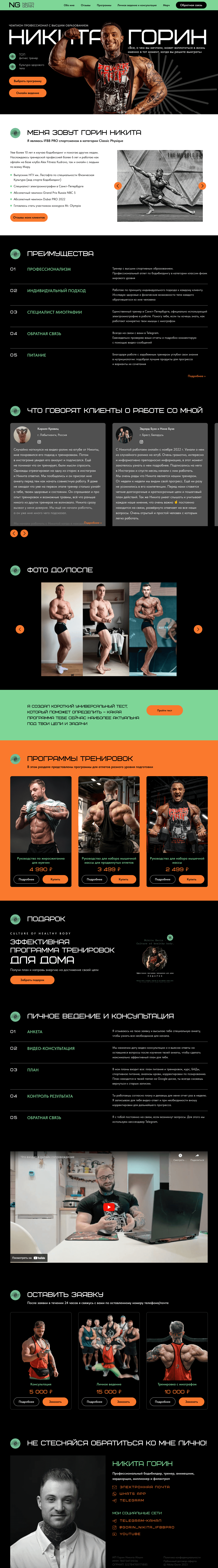 Редизайн и доработка сайта топ фитнес тренера Никиты Горина